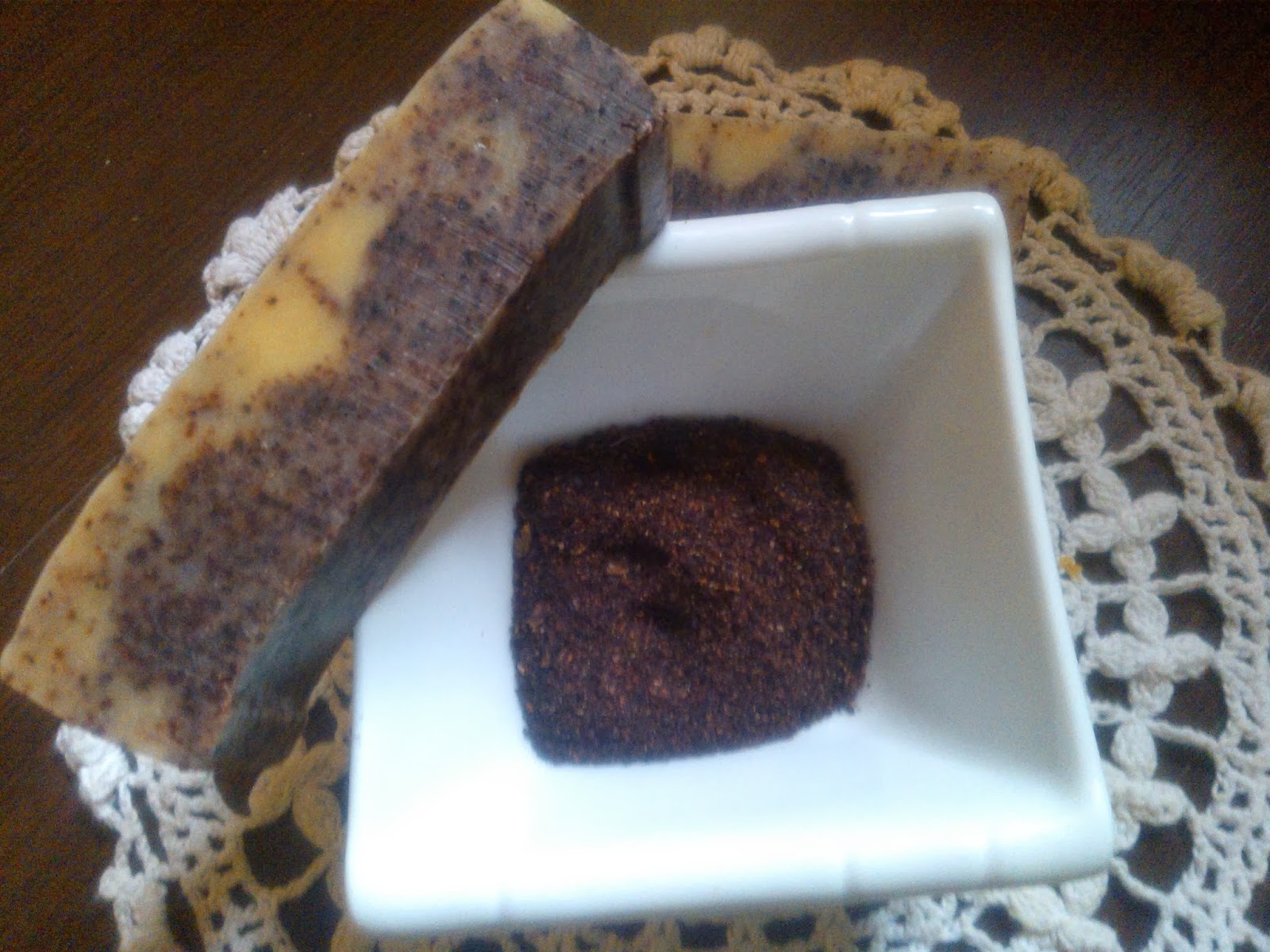 Elsőként a szőlőmaggal dúsított masszát öntöttem ki, majd erre került a világos réteg. A kiöntés után jól összeráztam és egy fapálcával próbáltam márványos mintát húzni a masszába. Mivel ez egy kisebb adag, bár látszik a két réteg, mégsem olyan mutatós, mintha egy fadobozban készült, megfelelő magasságú szappantömböt készítettem volna. (De ami késik, ugye...:) A szokott módon dunsztoltam és másnap szeleteltem. Terveim szerint egy lágyabb, de nagyon selymes, ápoló szappan lesz belőle, melyben a szőlőmag őrlemény hámosító hatását is élvezhetjük majd.